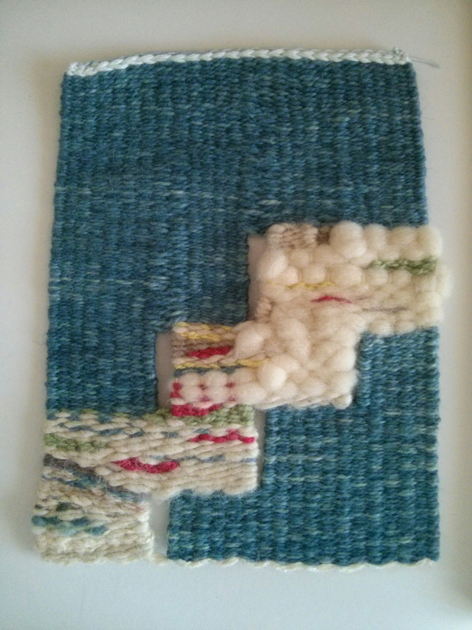 below: a finished weaving, ready to be hung on a piece of driftwood.