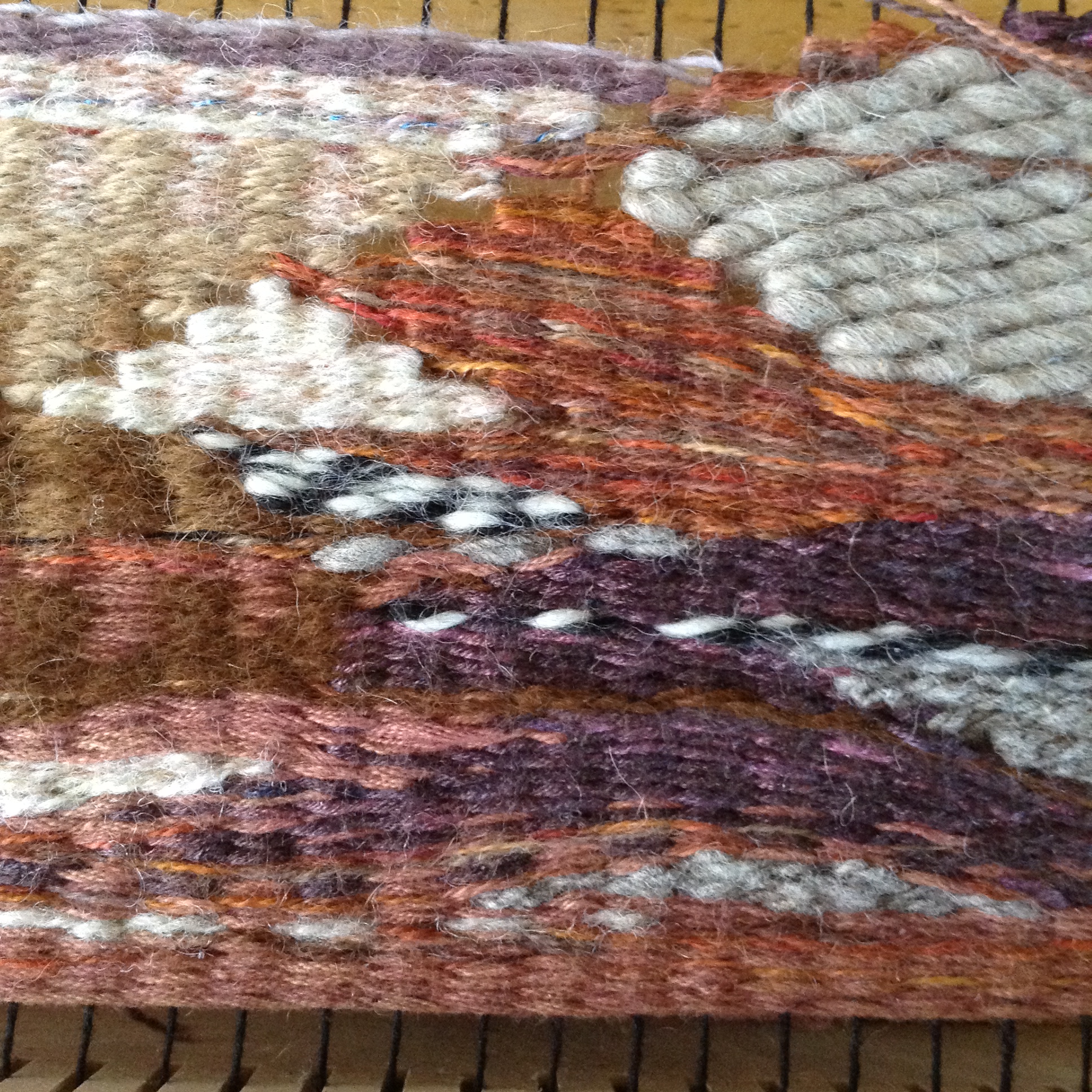 above: progress on the neon warp weaving. i am not super in love with this one, but sometimes that can change later. so i need to weave on, weave on.